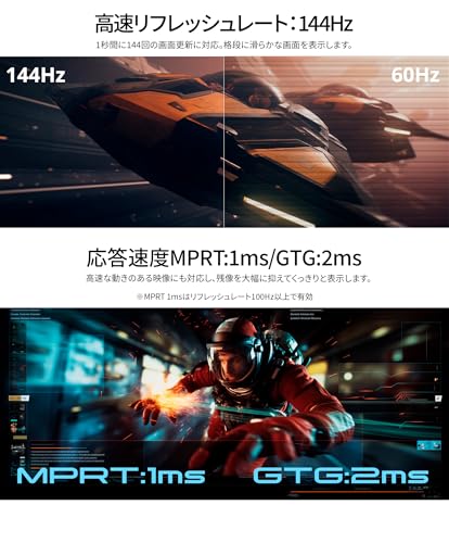 4K(3840×2160)解像度、リフレッシュレート144Hzに対応したゲーミングモニターです。