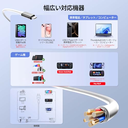 ケーブルの逆の端はUSB-Cコネクタで、こちらをSwitch 2などの映像機器に差し込んで使います。