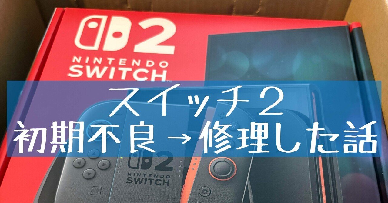 購入したSwitch 2に初期不良があり、任天堂に送って修理してもらった方の体験レポートがnoteで公開されていました。