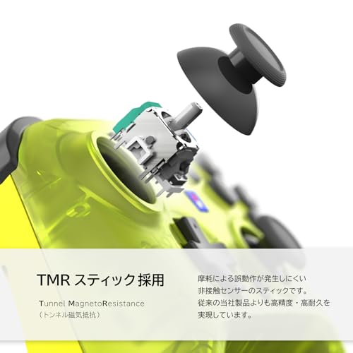 このコントローラーの注目ポイントは、従来のポテンショメーター式ではなく「TMR(トンネル磁気抵抗)スティック」を採用していること。