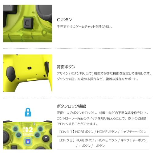 誤操作防止のためのボタンロック機能も備えており、HOMEボタンやキャプチャーボタンをロックして集中してプレイ可能。